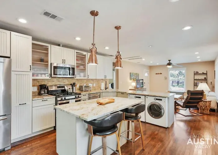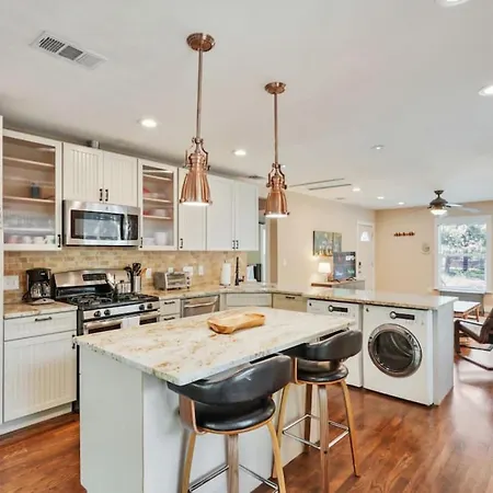 Villa Sizable Screened In Porch W Luxury Kitchen And Bath de 86 m^2 est située à 7 km de Capitole de l'état du Texas et à 4 km du Musée pour enfants Thinkery. La villa dispose de chambres meublées avec un pupitre d'écriture, le Wi-Fi et une TV.
